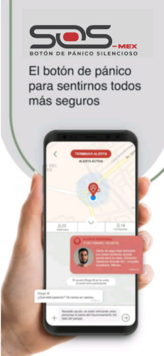 En situaciones peligrosas, cada segundo cuenta. SOS-MEX bot贸n de p谩nico en el celular y/o bot贸n f铆sico, permite alertar a las autoridades y contactos de emergencia de inmediato, acelerando la ayuda y ofreciendo seguridad personal.